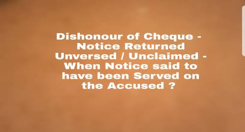 Kerela High Court :: Reckoning of the date of deemed receipt as the date of return of notice as in the instant case, where the notice has been returned unserved/unclaimed is unlikely to result in any prejudice to even the accused, as the accused would only get further time from the date of deemed service to discharge the liability due under the cheque. Whereas if hyper technical approach is taken to reckon the said date from the date when the postman made the endorsement that the addressee refused or returned the postal article, then it would cause serious prejudice to the complainant, as in many a case he might get intimation regarding the return of the notice quite late, which might even be after the period of 15 days from the date on which the postman had actually made the endorsement while attempting to serve notice in the address of the accused. This would result in the complaint that may be so filed later, as barred by limitation. In this context, it is noteworthy to mention that prior to the amendment introduced by Sec.9 of the Central Amendment Act 55 of 2002, made effective from 6.2.2003, there was no power conferred on the criminal court to condone the delay in filing a complaint for offence punishable under Sec. 138 of the Negotiable Instruments Act in view of the mandatory provisions contained clause (b) of Sec. 142 of the N.I. Act, as it stood then, which mandated that complaint is to be filed within one month of the date, on which the cause of action arises under clause (c) of proviso to Sec. 138, etc. It was only later as per the said Amendment Act, 55 of 2002 made effective from 6.2.2003 that the Parliament had engrafted proviso to clause (b) of Sec.142(1) providing that cognizance of the complaint could be taken by the court after the prescribed period, if the complainant satisfies the court that he had sufficient cause for not making a complaint within such stipulated period. So in a situation as in the instant case, which is covered by the provisions that existed prior to the Act 55 of 2002 (made effective prospectively only from 6.2.2003) such a complaint as mentioned herein above would have been totally time barred, with no provision for condoning the delay. This would have led to drastic and undesirable consequence on complainants, who could not be blamed for the time taken by the Postal Department in returning such unserved registered postal articles. [Para 13]