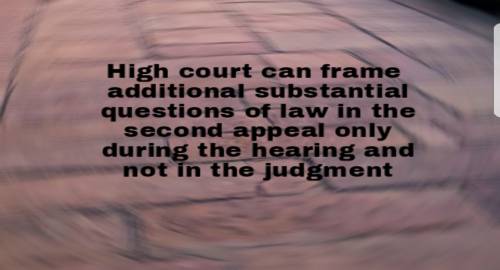 SC :: High court can frame additional substantial questions of law in the second appeal only during the hearing and not in the judgment.High court had allowed the appeal on the two additional questions, read more